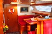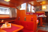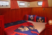 Unsere Yacht bietet 4 feste Schlafplätze. Achtern befinden sich ein Etagenbett und ein Doppelbett.