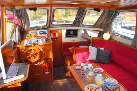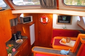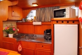 Das Boot ist komplett ausgestattet. Sie finden eine vollständige Pantry mit mehrflammigen Kochfeld und einen großen Kühlschrank. Weiterhin haben wir eine Kaffeemaschine, eine Mirkowelle und einen Wasserkocher.